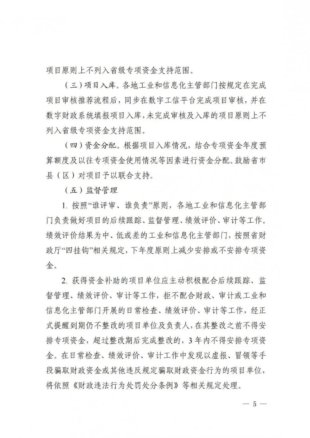 2.獲得資金補(bǔ)助的項(xiàng)目單位應(yīng)主動(dòng)積極配合后續(xù)跟蹤、監(jiān)督管理、績(jī)效評(píng)價(jià)、審計(jì)等工作,拒不配合財(cái)政、審計(jì)或工業(yè)和信息化主管部門開展的日常檢查、績(jī)效評(píng)價(jià)、審計(jì)等工作,經(jīng)正式提醒到期仍不整改的項(xiàng)目單位及負(fù)責(zé)人,在其整改之前不得安排專項(xiàng)資金,超過(guò)整改期后完成整改的,3年內(nèi)不得安排專項(xiàng)資金。在日常檢查、績(jī)效評(píng)價(jià)、審計(jì)工作中發(fā)現(xiàn)以虛報(bào)、冒領(lǐng)等手段騙取財(cái)政資金或其他違反規(guī)定騙取財(cái)政資金行為的項(xiàng)目單位,將依照《財(cái)政違法行為處罰處分條例》等相關(guān)規(guī)定處理。
