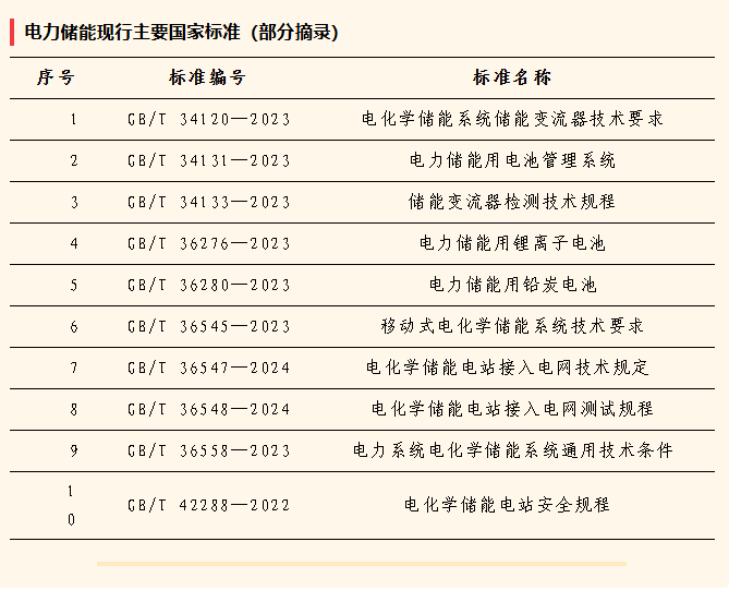 當(dāng)前我國儲(chǔ)能領(lǐng)域步入關(guān)鍵的標(biāo)準(zhǔn)化發(fā)展階段,標(biāo)準(zhǔn)體系基本完備,涵蓋基礎(chǔ)通用、規(guī)劃設(shè)計(jì)、施工及驗(yàn)收、運(yùn)行與維護(hù)、檢修、設(shè)備及試驗(yàn)、安全環(huán)保、技術(shù)管理等方面。2024年全國電力儲(chǔ)能標(biāo)委會(huì)發(fā)布電化學(xué)儲(chǔ)能相關(guān)國家標(biāo)準(zhǔn)18項(xiàng)、行業(yè)標(biāo)準(zhǔn)3項(xiàng)?!秷?bào)告》也對(duì)系列標(biāo)準(zhǔn)進(jìn)行了列舉,方便查閱參考。