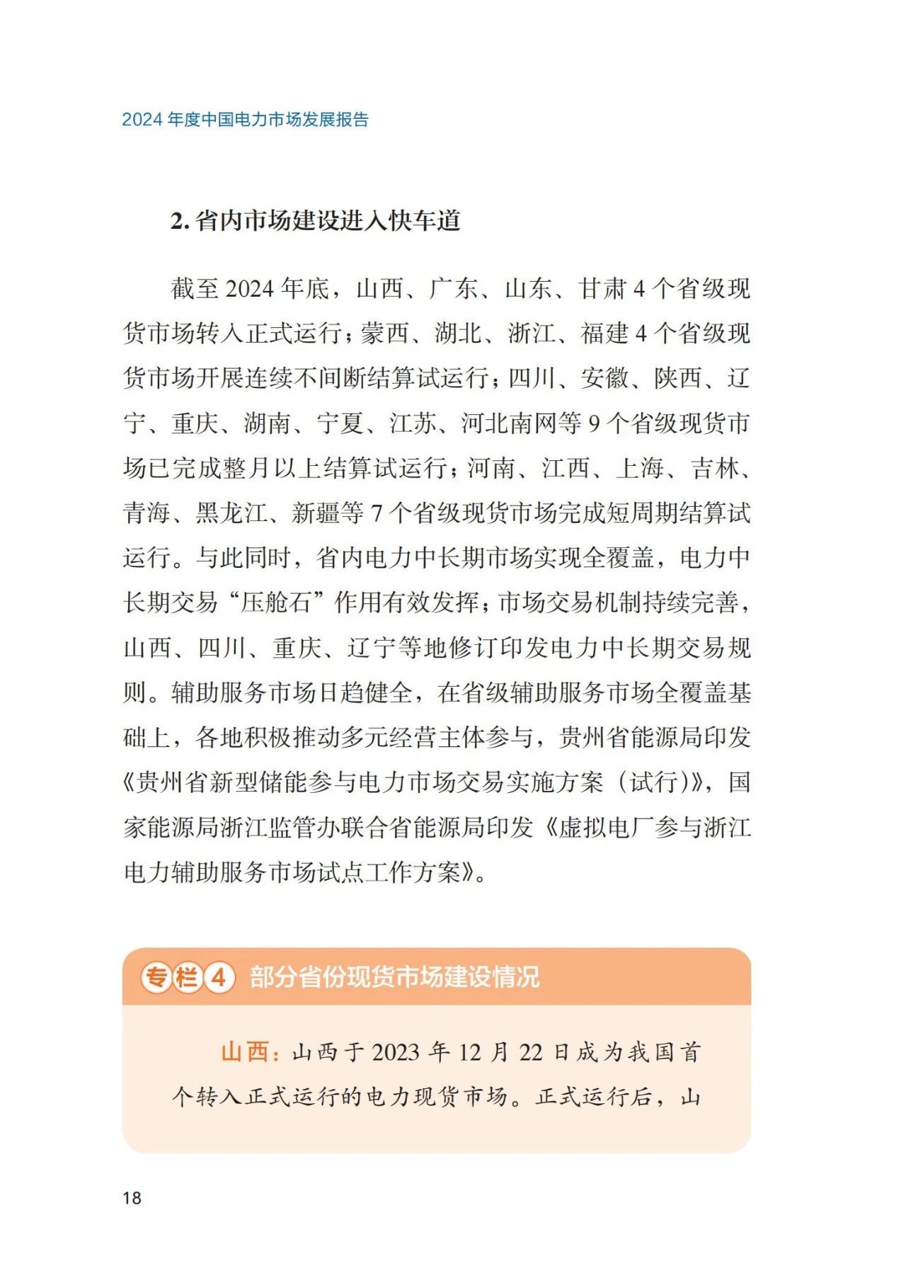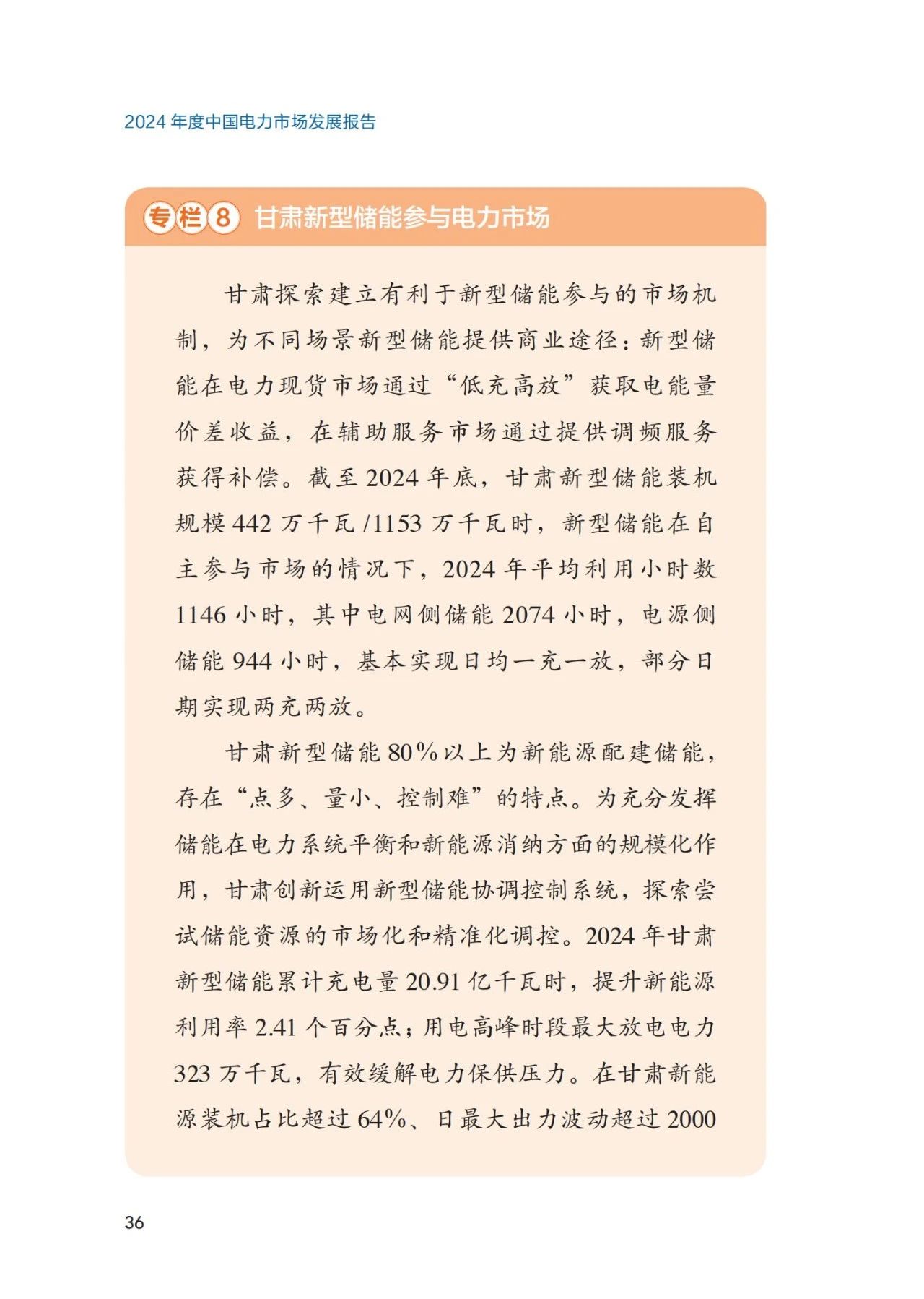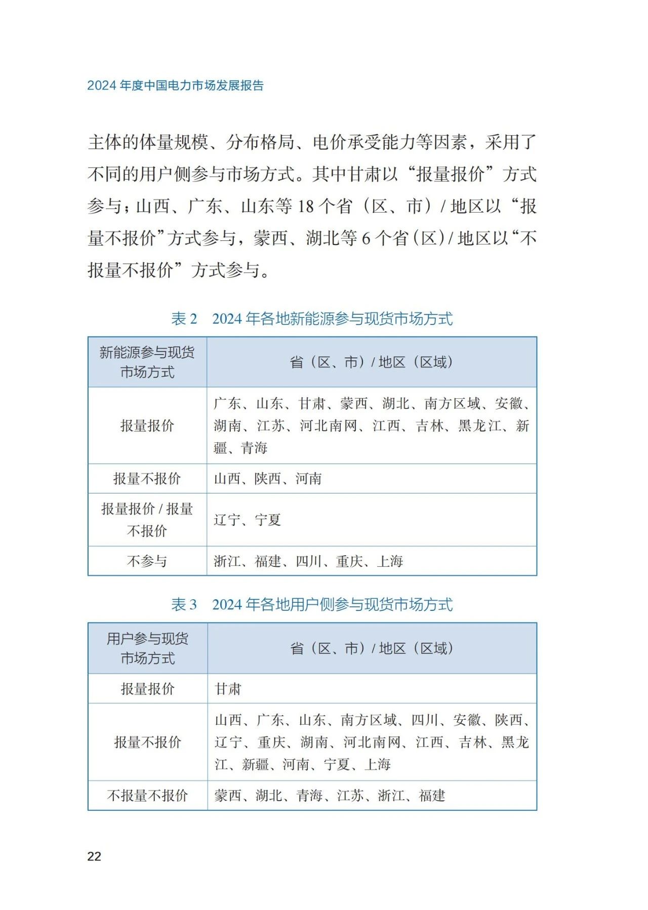 新型儲(chǔ)能參與市場(chǎng)方式更加多樣。2024年,我國(guó)新型儲(chǔ)能參與電力市場(chǎng)呈現(xiàn)“政策框架統(tǒng)一、區(qū)域差異化探索技術(shù)多元化應(yīng)用”的特征,通過(guò)參與電能量市場(chǎng)、輔助服務(wù)市場(chǎng)等多途徑實(shí)現(xiàn)收益。山東、廣東儲(chǔ)能以“報(bào)量報(bào)價(jià)”方式參與現(xiàn)貨,山西儲(chǔ)能可自主選擇“報(bào)量報(bào)價(jià)”或“報(bào)量不報(bào)價(jià)”方式參與現(xiàn)貨,甘肅儲(chǔ)能以“報(bào)量不報(bào)價(jià)”方式參與現(xiàn)貨,在電價(jià)高峰放電、低谷充電。廣東、甘肅、山西、山東等地儲(chǔ)能可自主選擇參與現(xiàn)貨和調(diào)頻市場(chǎng)。