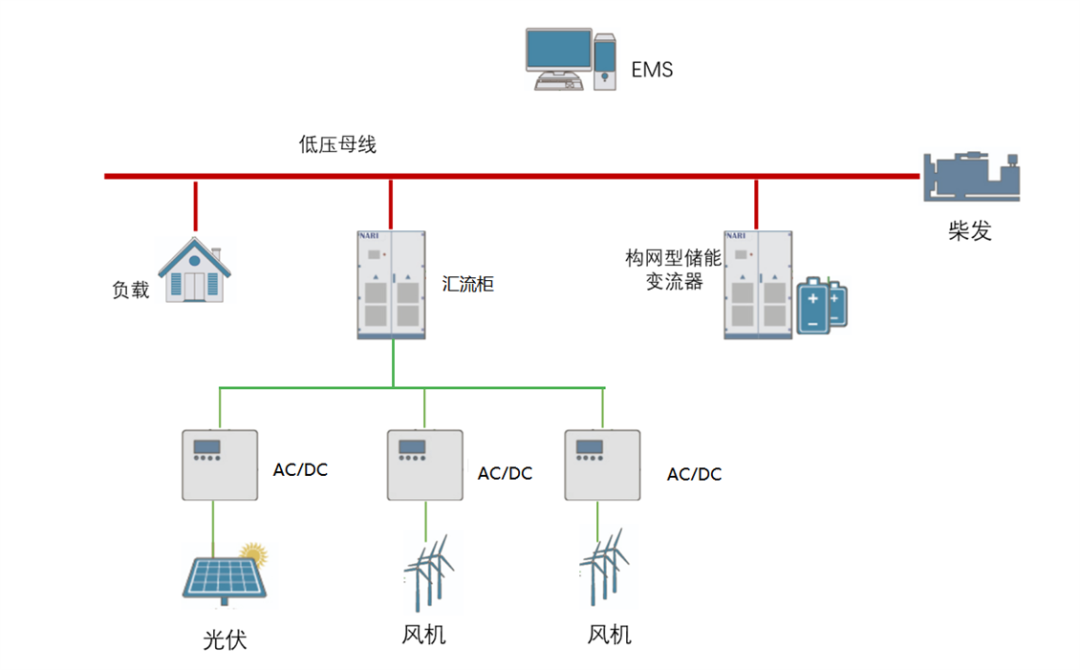 風(fēng)光柴儲(chǔ)離網(wǎng)微電網(wǎng)系統(tǒng)拓?fù)?/span>