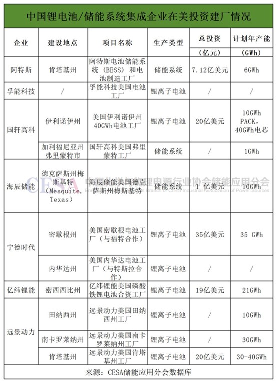 在此情況下,中國儲能企業(yè)也加快了在美國市場的產(chǎn)能布局。