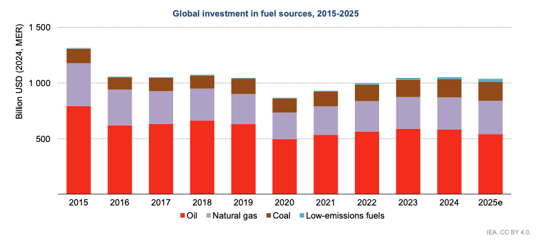 2015年-2025年全球燃料投資規(guī)模 來源:IEA