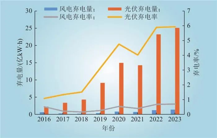 圖1 2016—2023年CAISO運營區(qū)域新能源棄電量和棄電率分析