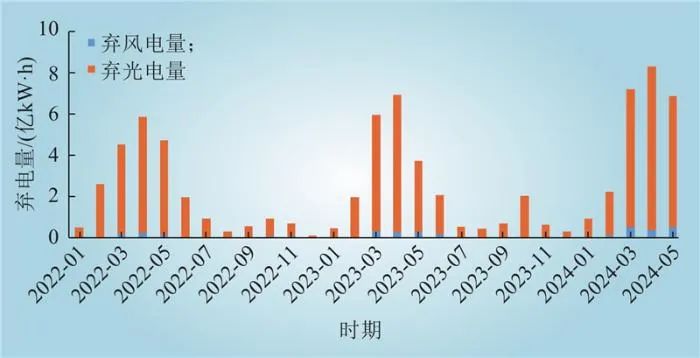 圖3 2022年1月—2024年5月CAISO運營區(qū)域新能源逐月棄電量分析
