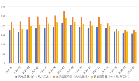 圖2 蒙西電力市場(chǎng)新能源結(jié)算價(jià)格情況(2024年1月—2025年3月)