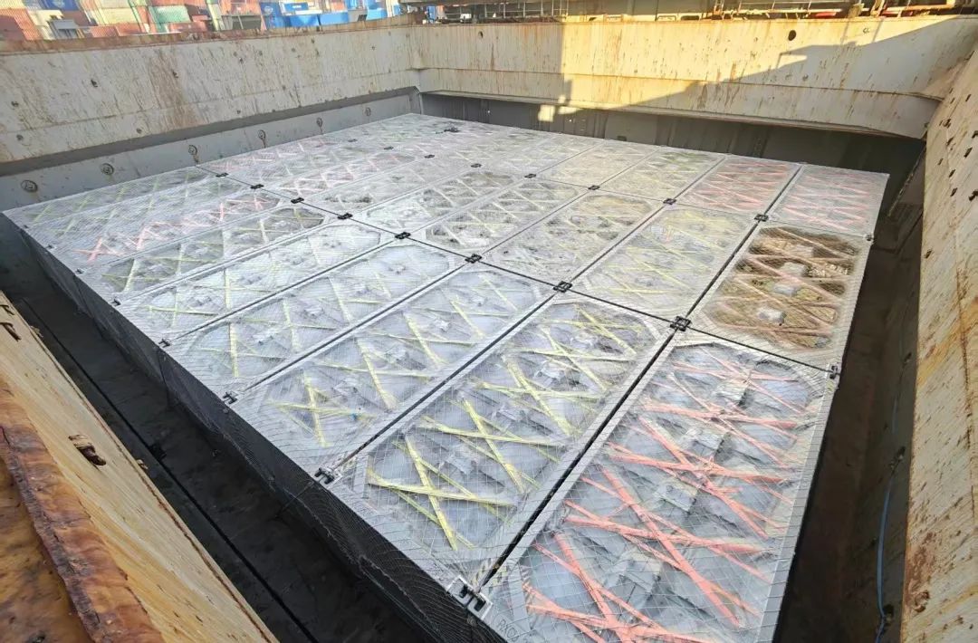 儲能柜屬9類危險品,價值高、重量大,為確保貨運安全,特運業(yè)務(wù)部門與技術(shù)團(tuán)隊深度交流,針對船舶底艙特點,制定詳細(xì)裝載方案,并聯(lián)動所屬船技工程公司,趕制配套襯墊鋼板,在各相關(guān)方密切配合下,348臺儲能柜經(jīng)過悉心配載綁扎,全部符合海事局裝載規(guī)范,穩(wěn)穩(wěn)坐上特運大船。