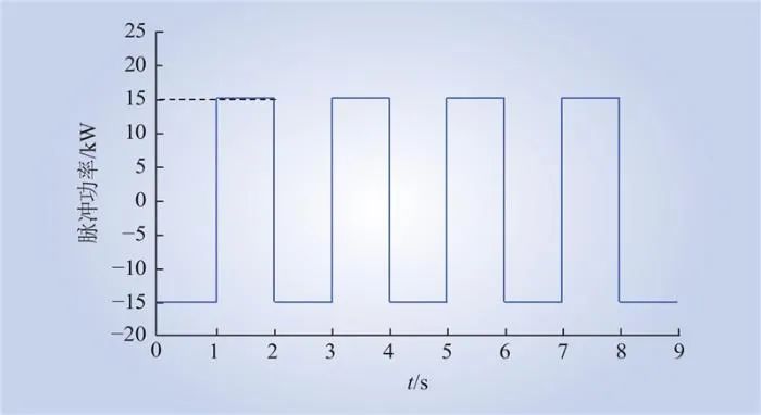 為了體現(xiàn)光伏發(fā)電、負(fù)荷波動等對配電網(wǎng)的影響,采用脈沖功率源模擬極端的功率波動情況。功率脈沖如圖10所示,功率脈沖為正表示向系統(tǒng)注入正向功率,對應(yīng)實際中光伏出力較高的場景,功率為負(fù)表示從系統(tǒng)吸收功率,對應(yīng)實際中負(fù)荷較高、光伏出力較低的場景。功率脈沖在–15 kW與15 kW之間切換,切換周期為2 s,模擬實際中光伏、負(fù)荷劇烈變化對配電網(wǎng)的影響。另外,選擇脈沖功率源也便于后續(xù)比較和分析。