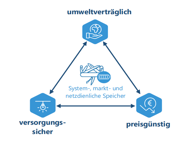 圖 2:系統(tǒng)支持型、市場支持型和電網(wǎng)支持型儲能系統(tǒng)為能源政策目標(biāo)三角做出貢獻(xiàn)。