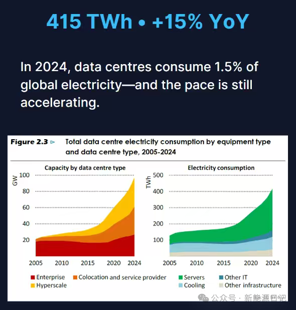 圖丨按設(shè)備類型和數(shù)據(jù)中心類型劃分的2005-2024年數(shù)據(jù)中心總能耗,2024年,數(shù)據(jù)中心消耗了全球電力的1.5%,而且這一速度仍在加快。