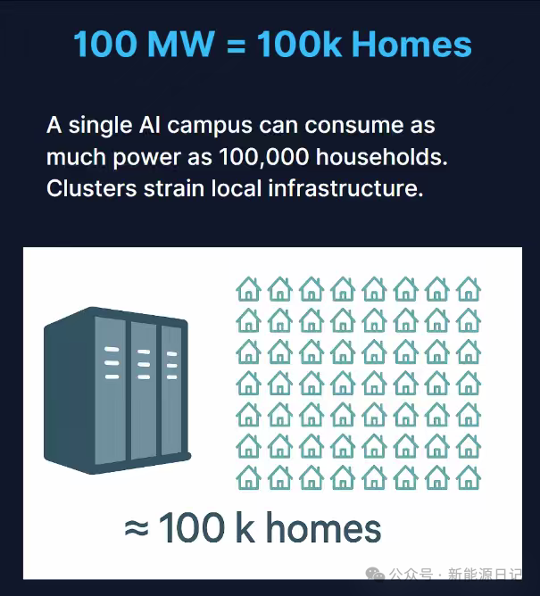 電網(wǎng)基礎(chǔ)設(shè)施在設(shè)計之初未預(yù)見AI革命帶來的需求激增。一個100兆瓦數(shù)據(jù)中心集群的耗電量可供10萬戶家庭使用,而規(guī)劃中的新一代數(shù)據(jù)中心規(guī)模更大,可滿足200萬戶家庭用電需求。這種集中化用電特性使數(shù)據(jù)中心選址越來越傾向電力資源豐富地區(qū),也促使科技企業(yè)直接參與能源基礎(chǔ)設(shè)施建設(shè)——谷歌、微軟等通過電力購買協(xié)議(PPA)已獲得120吉瓦可再生能源發(fā)電能力。