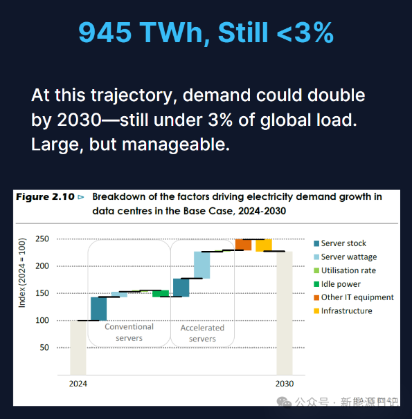 圖丨數(shù)據(jù)中心電力需求增長驅(qū)動因素,2024-2030,945TWh仍然不足全球負(fù)荷的3%。