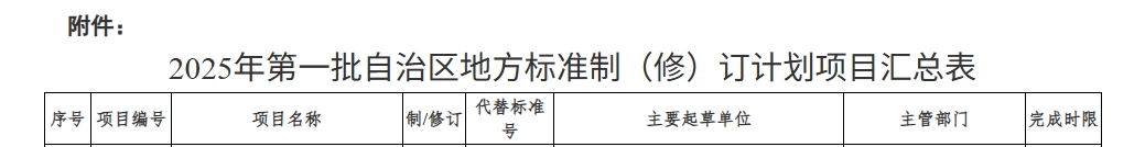 附件:2025年第一批自治區(qū)地方標(biāo)準(zhǔn)制(修)訂計(jì)劃項(xiàng)目匯總表