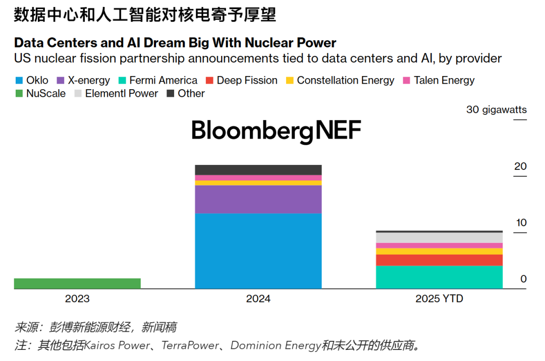 亞馬遜、谷歌、Meta、微軟和甲骨文等公司與核裂變公司達(dá)成的合作項(xiàng)目——總裝機(jī)容量達(dá)12.5GW——已成為市場(chǎng)關(guān)注焦點(diǎn)。谷歌上周還宣布與Commonwealth Fusion公司達(dá)成200MW的合作。