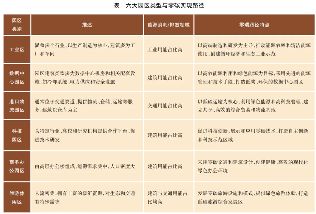 下表基于六大園區(qū)類(lèi)型揭示了不同園區(qū)功能定位與零碳路徑的關(guān)聯(lián)性。工業(yè)區(qū)與港口物流園分別以工業(yè)用能、交通用能為主導(dǎo),需聚焦清潔能源替代及效率提升;數(shù)據(jù)中心、科技園和商務(wù)園均屬建筑用能密集型,依賴智慧能源管理(如數(shù)據(jù)中心PUE優(yōu)化)和零碳建筑設(shè)計(jì);旅游區(qū)則兼具建筑與交通雙高能耗特征,需結(jié)合碳匯資源開(kāi)發(fā)低碳設(shè)施與綠色體驗(yàn)。盡管路徑差異顯著,所有園區(qū)均需整合可再生能源應(yīng)用、系統(tǒng)能效優(yōu)化及數(shù)字化碳管理,凸顯零碳轉(zhuǎn)型中“分型施策”與“系統(tǒng)協(xié)同”的雙重邏輯。