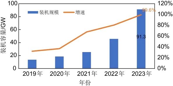 圖1 2019—2023年全球新型儲能累計(jì)裝機(jī)規(guī)模及增速