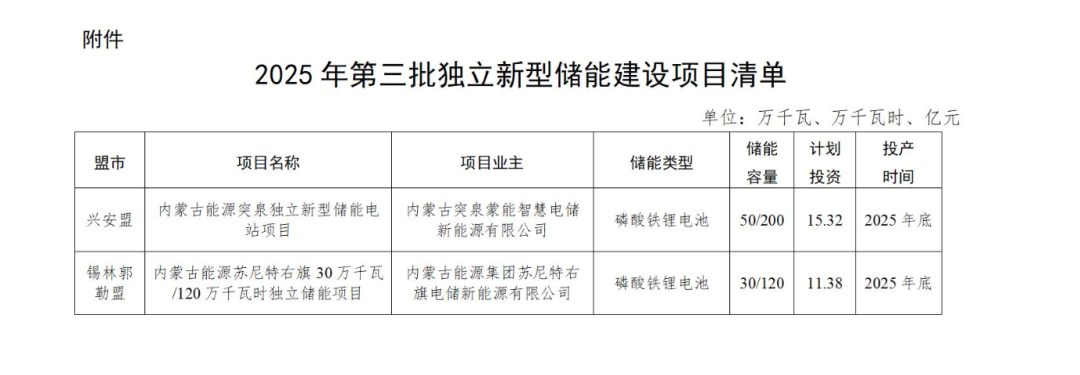 內(nèi)蒙古自治區(qū)能源局關(guān)于印發(fā)2025年第三批獨(dú)立新型儲(chǔ)能建設(shè)項(xiàng)目清單的通知