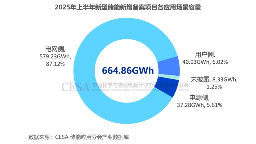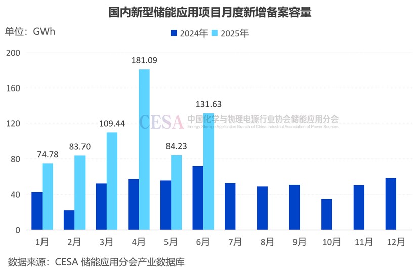 2025年上半年新增備案的7113個(gè)儲(chǔ)能應(yīng)用項(xiàng)目總規(guī)模達(dá)263.3GW/664.86GWh,同比增長(zhǎng)108.85%(功率)/120.45%(容量)。