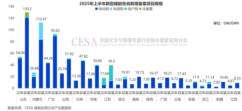 就區(qū)域分布來(lái)看,2025年上半年,山東新型儲(chǔ)能新增433個(gè)儲(chǔ)能應(yīng)用備案項(xiàng)目,主要為獨(dú)立儲(chǔ)能項(xiàng)目,總規(guī)模達(dá)54.04GW/130.2GWh,居全國(guó)首位。