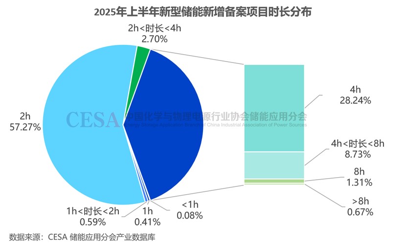2h以下功率型儲(chǔ)能新增備案6.28GW/7.06GWh,占比2.44%(功率)/1.08%(容量)。
