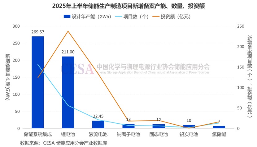 據(jù)CESA儲(chǔ)能應(yīng)用分會(huì)產(chǎn)業(yè)數(shù)據(jù)庫(kù)不完全統(tǒng)計(jì),2025年上半年,國(guó)內(nèi)共新增備案了624個(gè)儲(chǔ)能生產(chǎn)制造項(xiàng)目,包括鋰電池、液流電池、鈉離子電池、固態(tài)電池、鉛炭電池、PACK、儲(chǔ)能系統(tǒng)集成、光儲(chǔ)充設(shè)備制造等多種產(chǎn)線。其中164個(gè)公布了計(jì)劃投資金額,總計(jì)675.9億元。