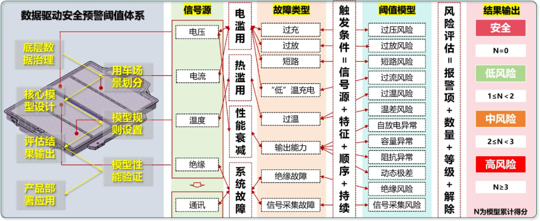 預(yù)警監(jiān)控系統(tǒng)可利用AI算法模型識(shí)別潛在的熱失控風(fēng)險(xiǎn),通過(guò)時(shí)序模型處理時(shí)間序列和異常特征數(shù)據(jù),可對(duì)過(guò)壓、過(guò)放、短路等16項(xiàng)潛在風(fēng)險(xiǎn)進(jìn)行檢測(cè)和應(yīng)對(duì)。同時(shí),系統(tǒng)設(shè)立了分級(jí)報(bào)警制度,根據(jù)不同熱失控階段的危害程度、信號(hào)特征、提前報(bào)警要求制定相對(duì)應(yīng)的閾值參數(shù),能夠及時(shí)響應(yīng)風(fēng)險(xiǎn)并采取有效措施。
