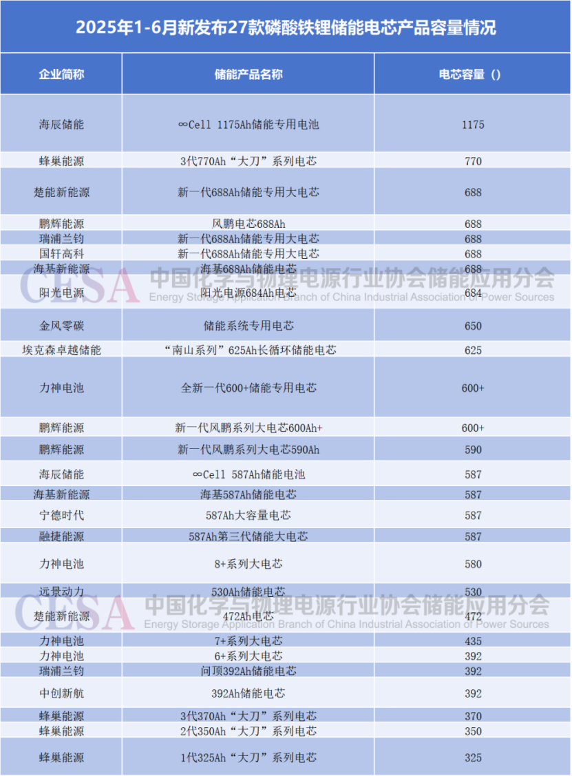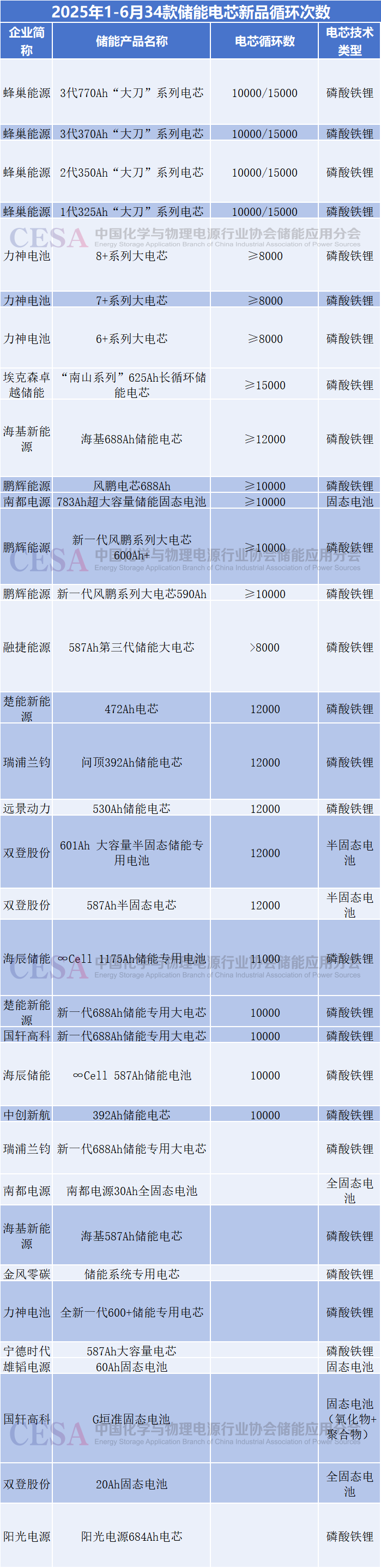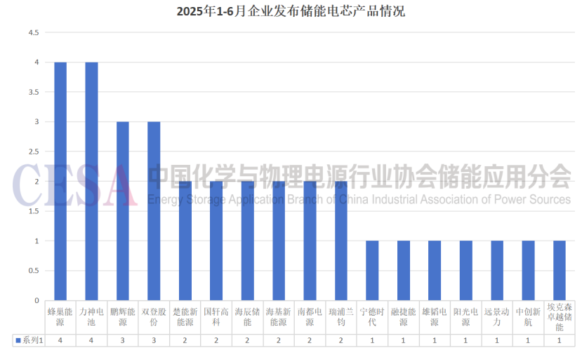 據(jù)CESA儲(chǔ)能應(yīng)用分會(huì)產(chǎn)業(yè)數(shù)據(jù)庫不完全統(tǒng)計(jì),2025年1-6月共計(jì)17家企業(yè)相繼發(fā)布34款儲(chǔ)能電芯新品。