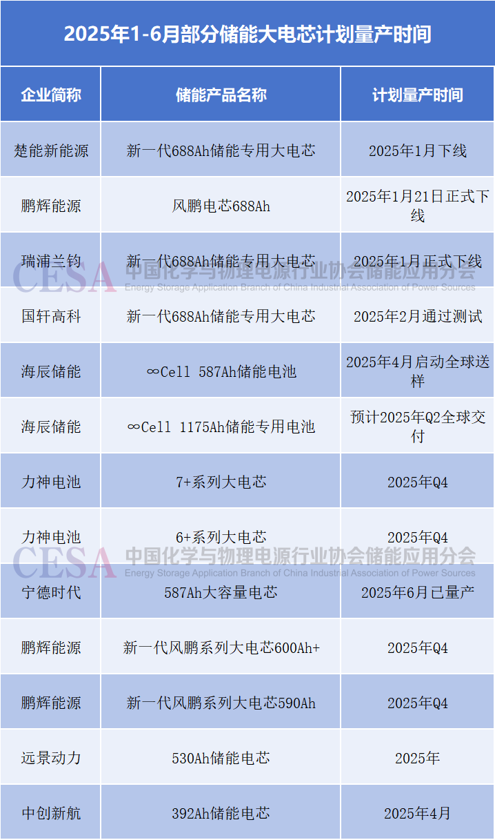 頭部企業(yè)動(dòng)作尤為密集:楚能新能源、鵬輝能源、瑞浦蘭鈞三家同步在2025年1月完成688Ah電芯下線,形成技術(shù)代際的集體突破;寧德時(shí)代則以6月587Ah電芯量產(chǎn)的節(jié)點(diǎn),鞏固其產(chǎn)能轉(zhuǎn)化效率優(yōu)勢。