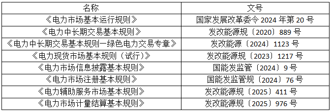表:全國(guó)統(tǒng)一電力市場(chǎng)“1+6”基礎(chǔ)規(guī)則體系