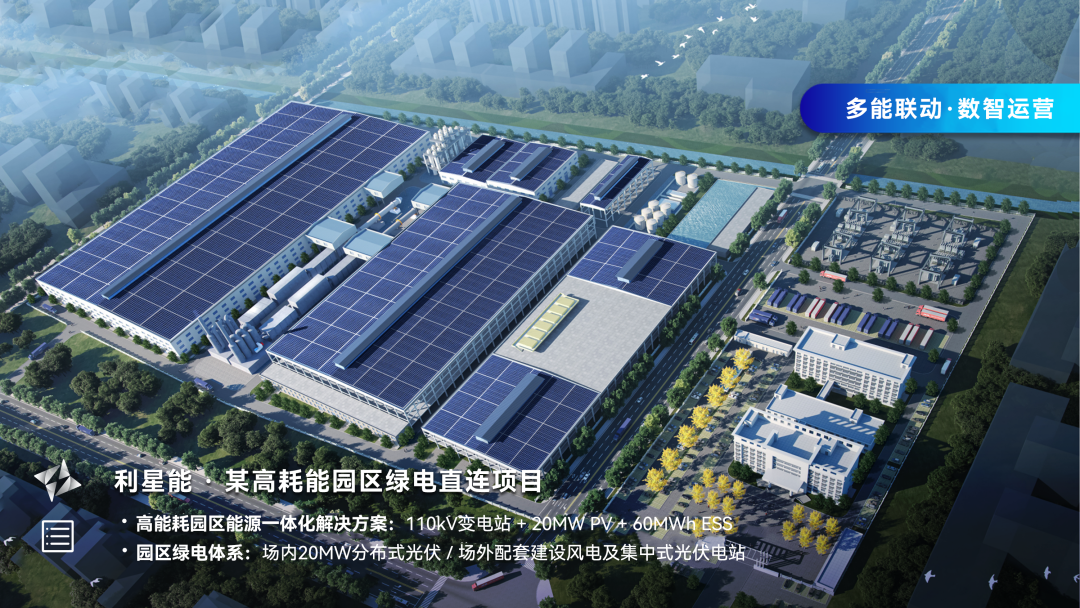 園區(qū)內(nèi)部署20MW分布式光伏,配套60MWh儲能系統(tǒng),結(jié)合利星能成熟的光儲直柔解決方案,既可動態(tài)調(diào)節(jié)、實現(xiàn)收益、提升綠電消納率,也有效保障了園區(qū)在極端天氣或波動時段的供電連續(xù)性和穩(wěn)定性。