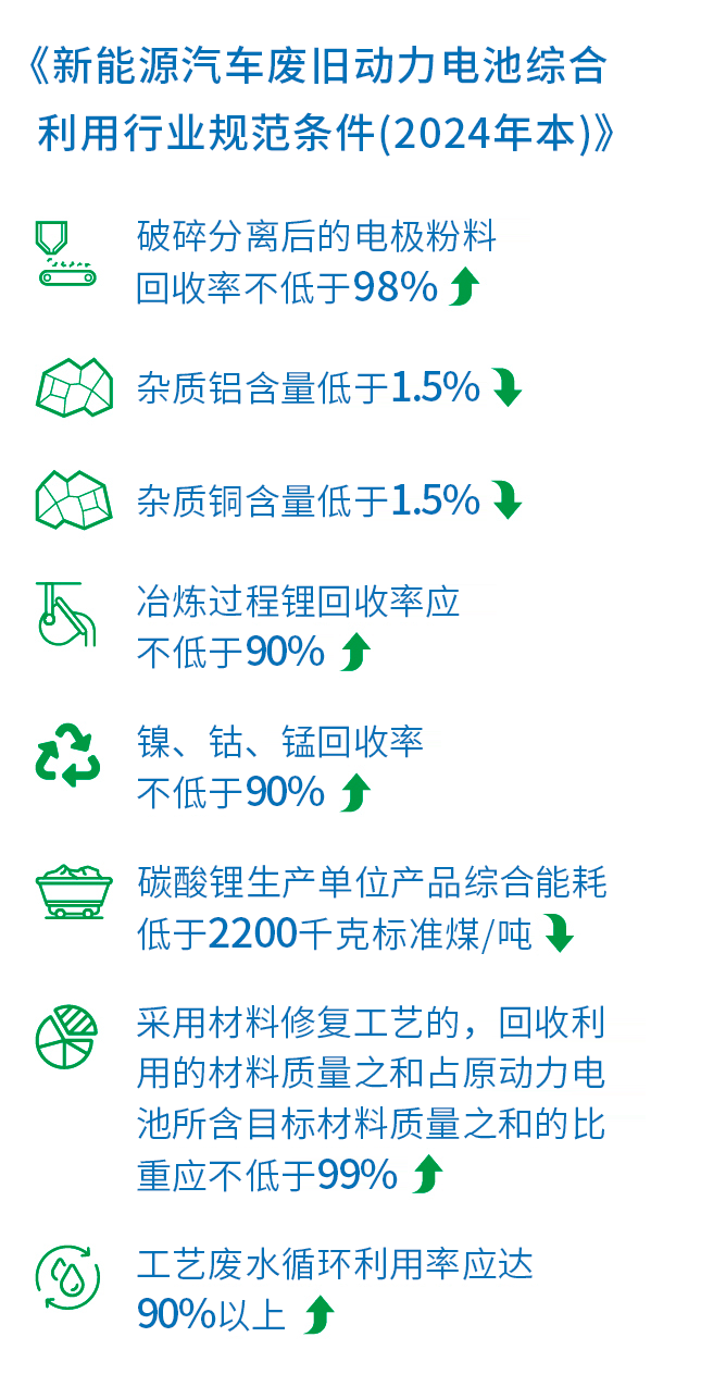此外,《新能源汽車廢舊動力電池綜合利用行業(yè)規(guī)范條件(2024年本)》不僅對企業(yè)選址、溯源管理、節(jié)能評估等提出了更高要求,也通過強(qiáng)化監(jiān)督檢查、明確生產(chǎn)者責(zé)任等,促進(jìn)行業(yè)穩(wěn)步邁向規(guī)范化。