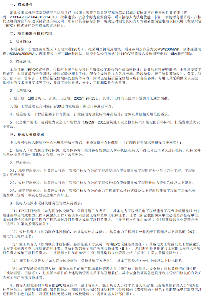 湖北長(zhǎng)陽(yáng)龍舟坪鎮(zhèn)新型儲(chǔ)能電站項(xiàng)目EPC招標(biāo)公告