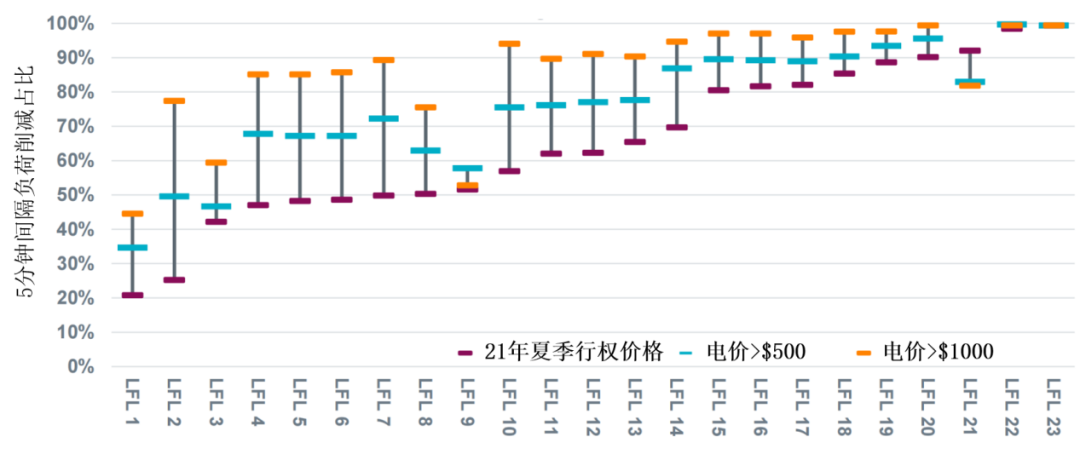 圖7:不同電價觸發(fā)的大型負荷削減占比(2023年9月到2024年2月)。不同的大型靈活負荷(LFL)在價格響應性方面差異顯著[4]