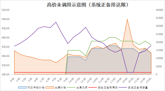 第二種是受系統(tǒng)安全約束影響,特別是廣東晚高峰時段普遍面臨系統(tǒng)正備用達限的情況,為滿足系統(tǒng)備用約束需要機組預留必要出力,這必然導致部分機組出力無法滿負荷運行或帶高出力。在區(qū)域出清模型下,為體現(xiàn)廣東電廠的備用價值,在此情況下由省外高價機組定價,拉高省內(nèi)機組出清價格,就此產(chǎn)生的價格差異為區(qū)域環(huán)境下賦予該節(jié)點的備用價值。