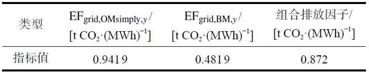 以可再生能源并網(wǎng)發(fā)電替代所在區(qū)域電網(wǎng)連接的并網(wǎng)電廠及其新增發(fā)電源提供同等電量而減少的碳排放量作為碳減排效益。其中碳排放因子根據(jù)《電力系統(tǒng)排放因子計算工具》(07.0版)計算,包括電量邊際排放因子(OM)和容量邊際排放因子(BM)。