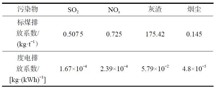 根據(jù)發(fā)展改革委、環(huán)境保護(hù)部和能源局發(fā)布的《煤電節(jié)能減排升級與改造行動計劃(2014—2020年)》的超潔凈達(dá)標(biāo)排放限值要求,得到燃煤發(fā)電排放系數(shù),如下表所示。