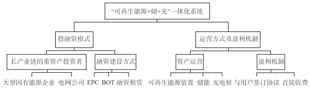 針對在高速公路服務(wù)區(qū)建設(shè)“可再生能源+儲+充”一體化系統(tǒng)的項目,長產(chǎn)業(yè)鏈的重資產(chǎn)投資者通過EPC、BOT、融資租賃等方式進(jìn)行融資建設(shè),利用可再生能源裝置、儲能、充電樁等資產(chǎn)為用戶提供電能,余電上網(wǎng),并通過與用戶簽訂協(xié)議或直接收費(fèi)的方式獲得運(yùn)營收益。場景內(nèi)容具體如下圖所示。