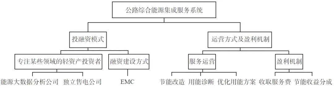 針對公路綜合能源集成服務(wù)系統(tǒng)項目,專注某些領(lǐng)域的輕資產(chǎn)投資者通過EMC方式進(jìn)行融資建設(shè),利用節(jié)能改造、用能診斷、優(yōu)化用能方案等手段,為用戶提高供能可靠性,節(jié)約能源支出,并通過收取服務(wù)費(fèi)和節(jié)能收益分成的方式獲得運(yùn)營收益。場景內(nèi)容具體如下圖所示。