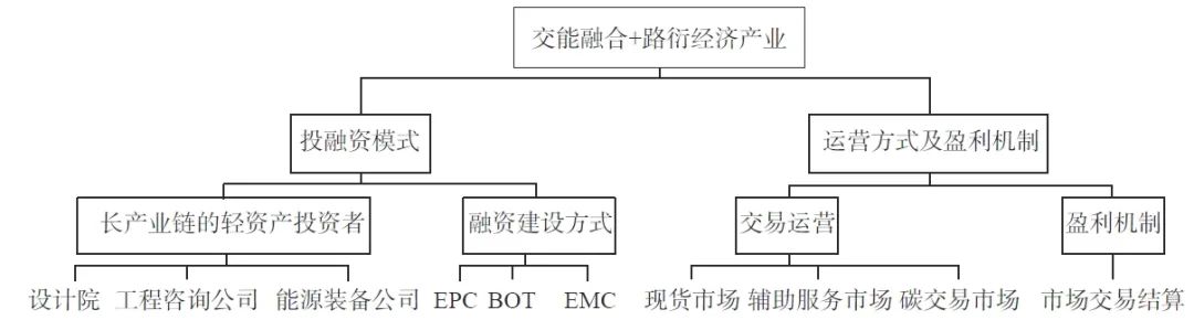 針對“交能融合+路衍經(jīng)濟(jì)產(chǎn)業(yè)”協(xié)同模式的項目,長產(chǎn)業(yè)鏈的輕資產(chǎn)投資者通過EPC、BOT、EMC等方式進(jìn)行融資建設(shè),與路衍經(jīng)濟(jì)的不同產(chǎn)業(yè)用戶進(jìn)行市場交易,增加新能源消納,促進(jìn)節(jié)能減排,并通過市場交易結(jié)算的方式獲得運(yùn)營收益。場景內(nèi)容具體如下圖所示。