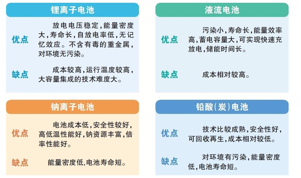 在眾多儲(chǔ)能技術(shù)中,電化學(xué)儲(chǔ)能技術(shù)發(fā)展速度相對(duì)較快。常見的電化學(xué)儲(chǔ)能技術(shù)主要有鋰離子電池、液流電池、鈉離子電池、鉛酸(炭)電池等類型。