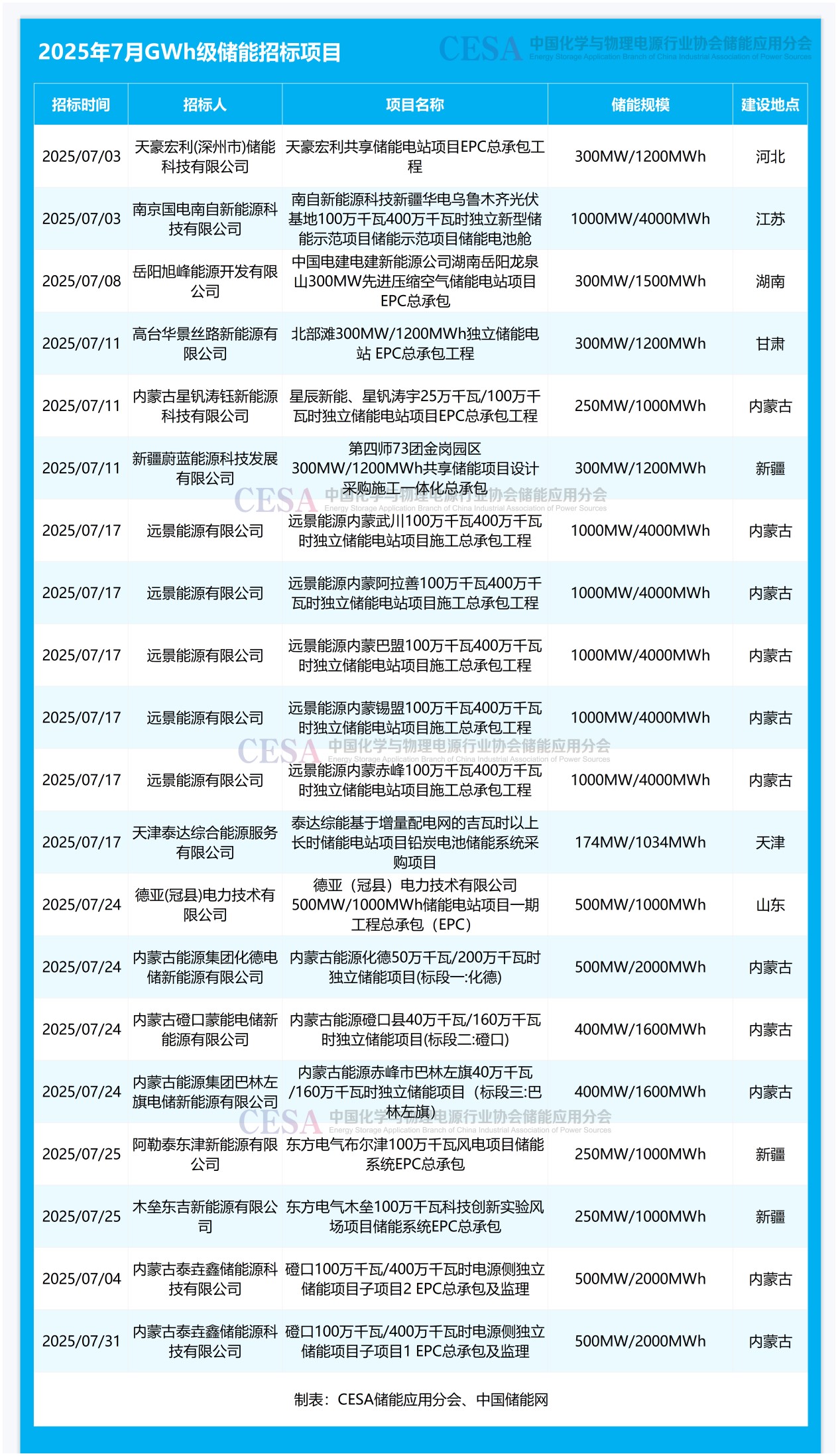 2025年1-7月儲(chǔ)能(含直流側(cè)設(shè)備)采招落地總規(guī)模已超過200GWh。