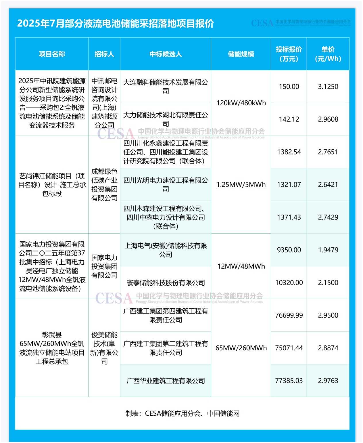 2025年7月,多個(gè)液流電池儲(chǔ)能項(xiàng)目采招落地。