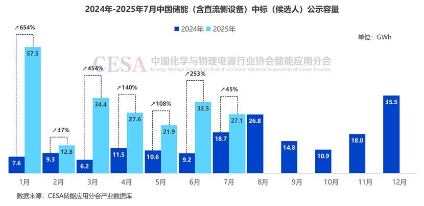 中國儲能網(wǎng)訊:據(jù)CESA儲能應(yīng)用分會產(chǎn)業(yè)數(shù)據(jù)庫不完全統(tǒng)計,2025年1-7月國內(nèi)新型儲能項目超1000次中標(biāo)(候選人)公示,采招落地規(guī)模達56.1GW/213.8GWh。
