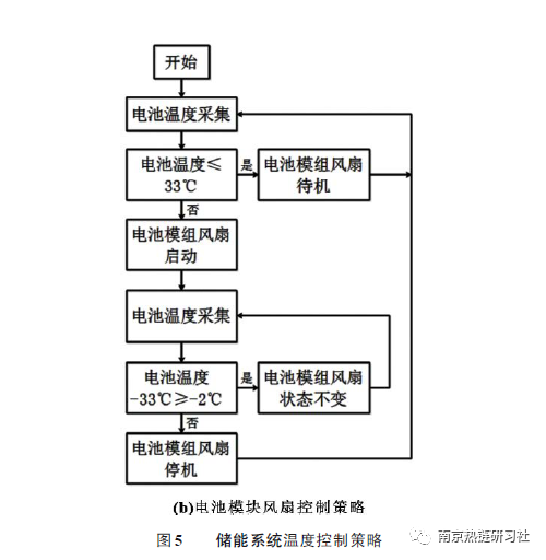 儲能系統(tǒng)溫度控制策略包括空調(diào)控制和電池模塊風(fēng)扇控制,如圖5所示。