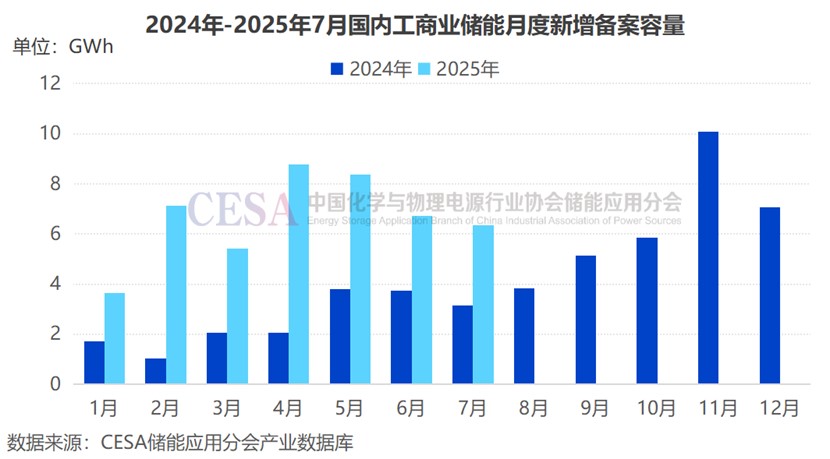 在用戶側(cè),工商業(yè)儲(chǔ)能熱度不減。據(jù)CESA儲(chǔ)能應(yīng)用分會(huì)產(chǎn)業(yè)數(shù)據(jù)庫不完全統(tǒng)計(jì),2025年7月,共新增1088個(gè)用戶側(cè)工商業(yè)儲(chǔ)能備案項(xiàng)目,其中821個(gè)公示了備案規(guī)模,總計(jì)2.96GW/6.36GWh,容量規(guī)模同比增長(zhǎng)109.67%。