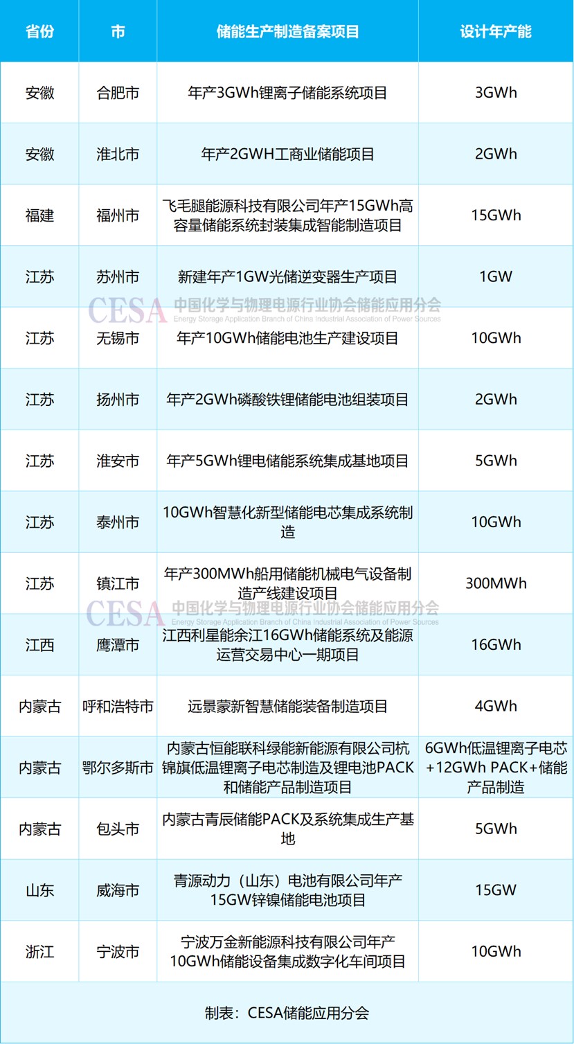 表 2025年7月部分新增備案儲(chǔ)能生產(chǎn)制造項(xiàng)目