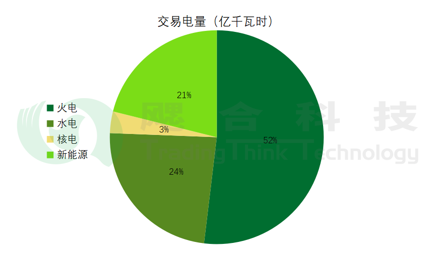 按發(fā)電類型看,省間火電交易電量3794億千瓦時,同比下降1.2%;省間水電交易電量1733億千瓦時,同比增長12.6%;省間核電交易電量239億千瓦時,同比增長1.0%;省間新能源交易電量1544億千瓦時,同比增長42.9%。