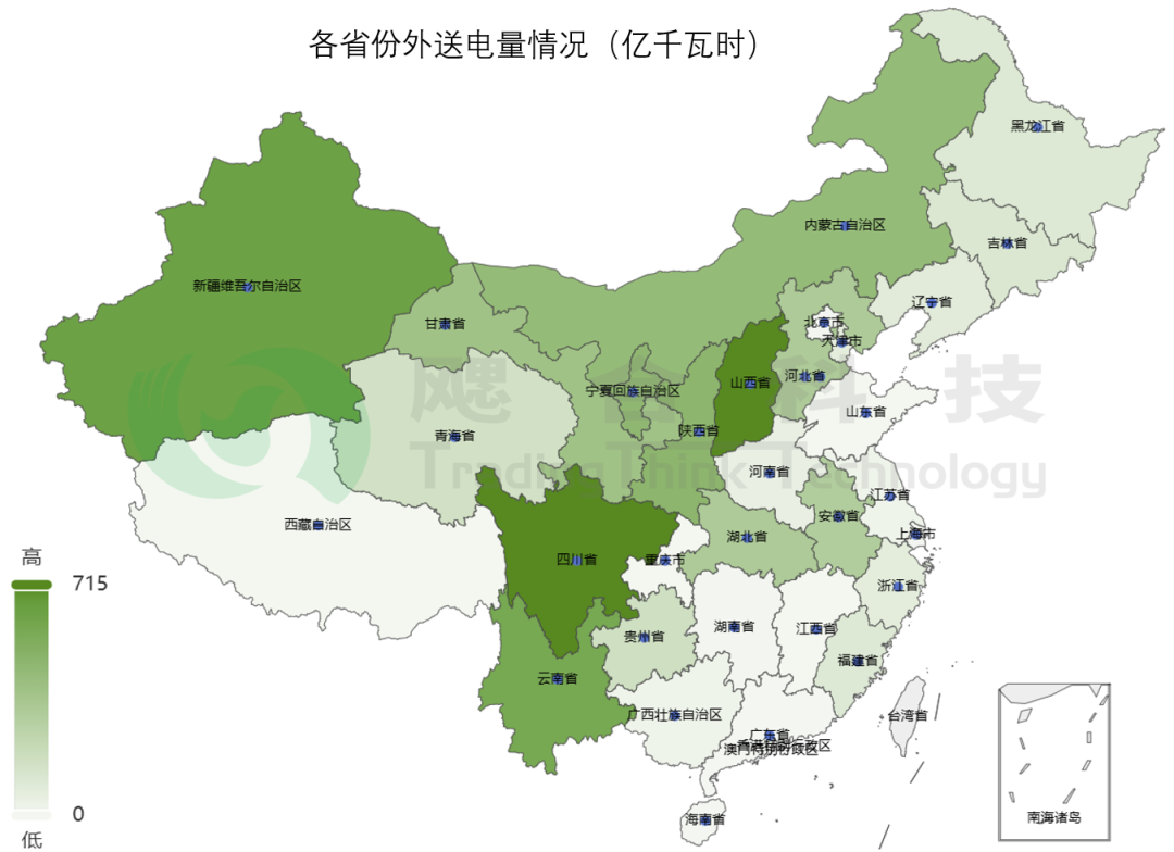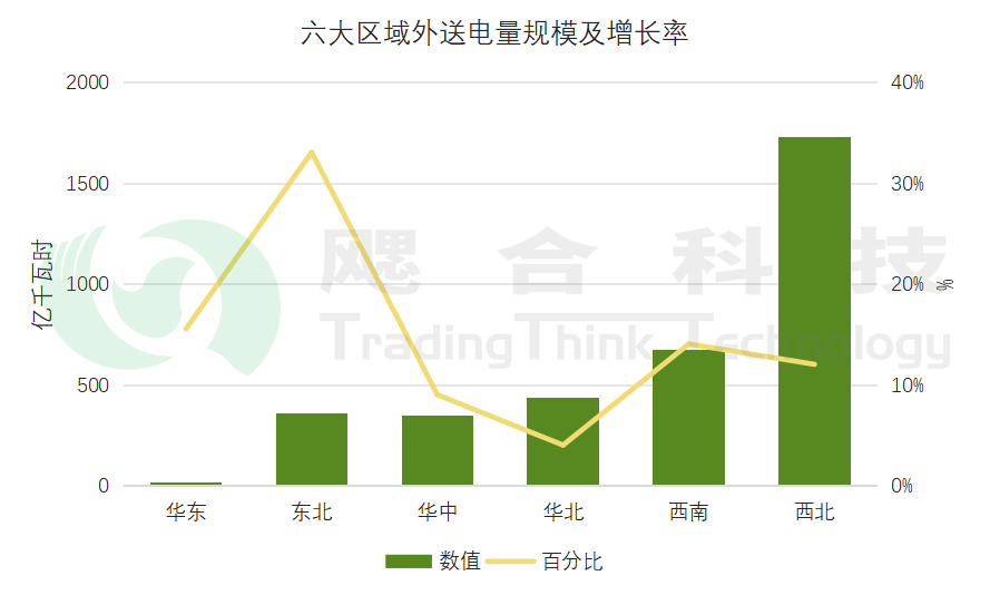 按區(qū)域送電情況看,西北跨區(qū)外送交易電量1736億千瓦時,東北跨區(qū)外送交易電量362億千瓦時,華北跨區(qū)外送交易電量440億千瓦時。