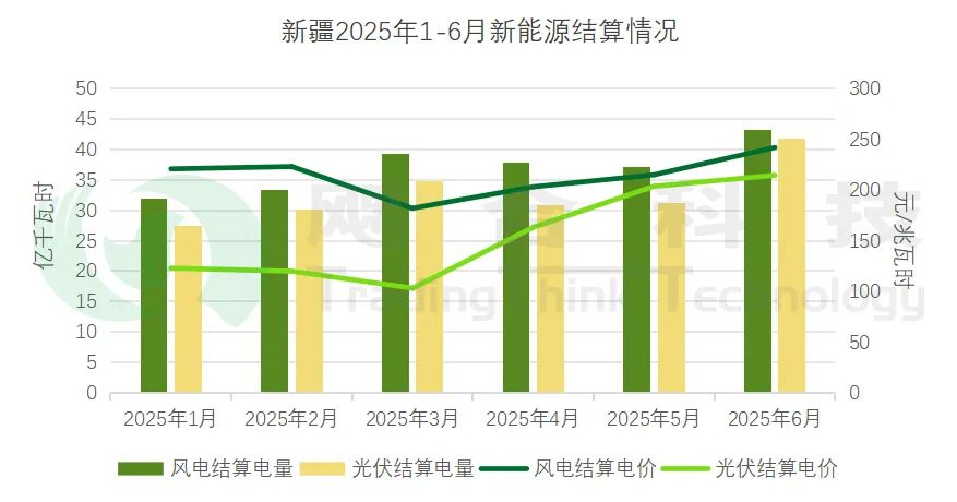 2025年1-6月新疆省內(nèi)綠電結(jié)算電量23.66億千瓦時,結(jié)算均價202.33元/兆瓦時。