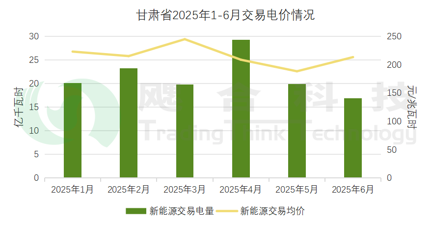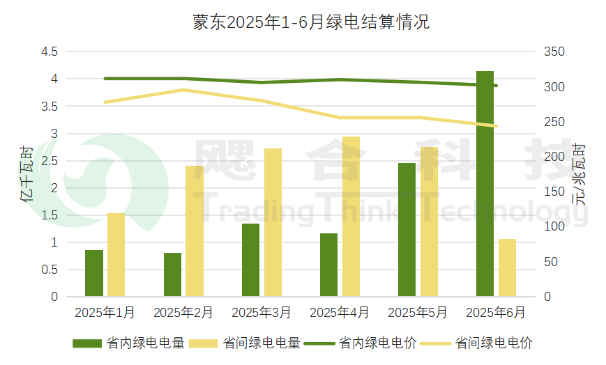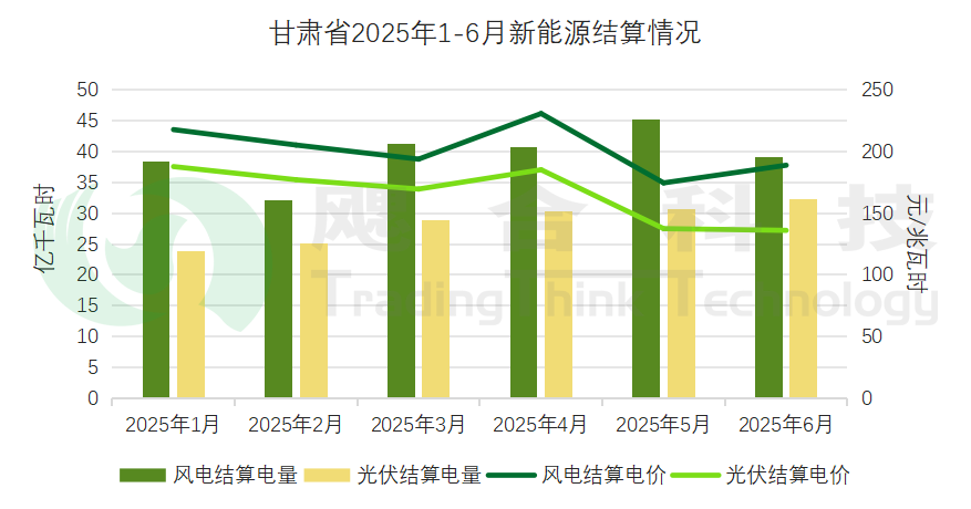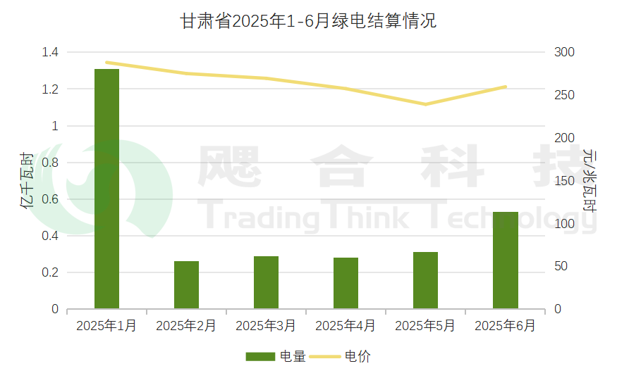 2025年1-6月甘肅省結(jié)算綠電電量2.98億千瓦時,結(jié)算均價264.96元/兆瓦時。