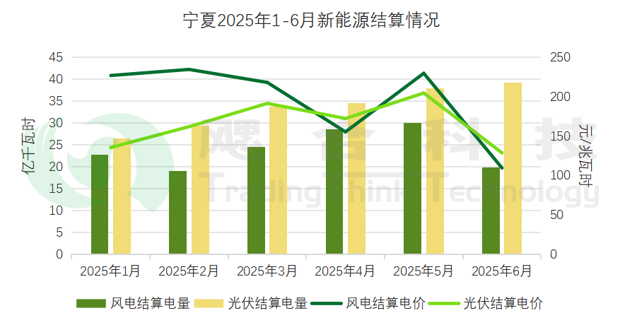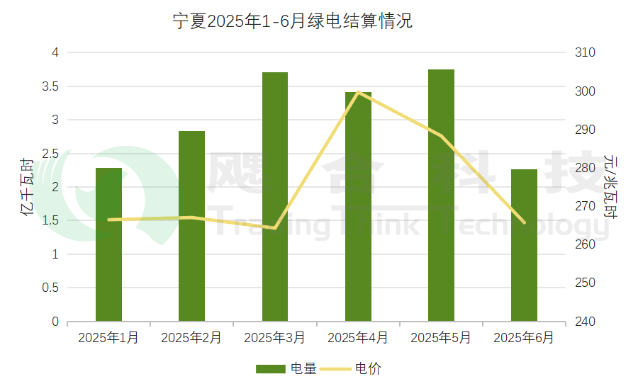 2025年1-6月寧夏結(jié)算綠電電量18.24億千瓦時,結(jié)算均價275.51元/兆瓦時。